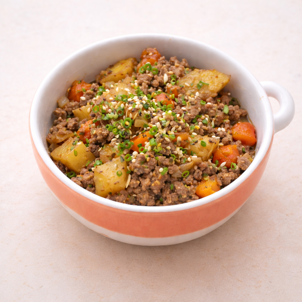This Japanese ginger beef stew is a savory, umami-rich blend of ground beef, potatoes, and carrots simmered with soy sauce and ginger. It eats like a cozy chili and is especially appealing to kids thanks to its familiar texture and mild sweetness.