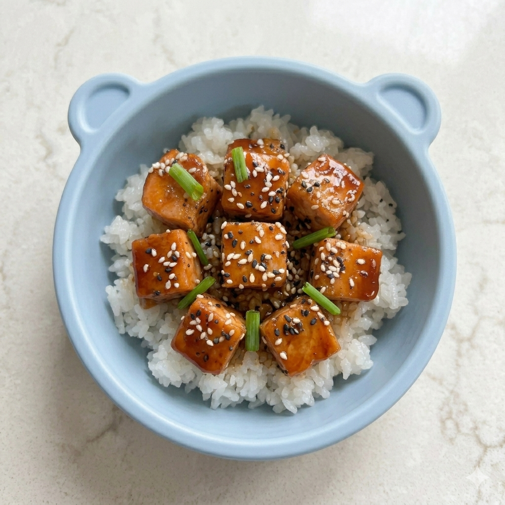 Keywords: teriyaki salmon for kids, toddler salmon recipes, crispy salmon cubes, healthy dinner for kids, kid-friendly fish recipes, air fryer salmon for toddlers, toddler dinner ideas, quick family recipes