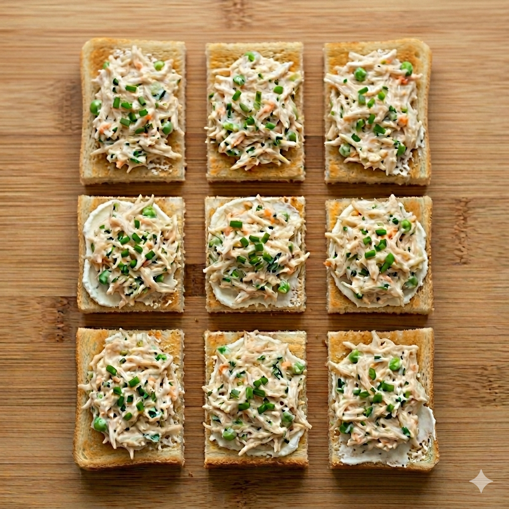- Cream Cheese: Used as a “glue” on the toast points to keep the salad in place and add an extra layer of mild, creamy flavor.